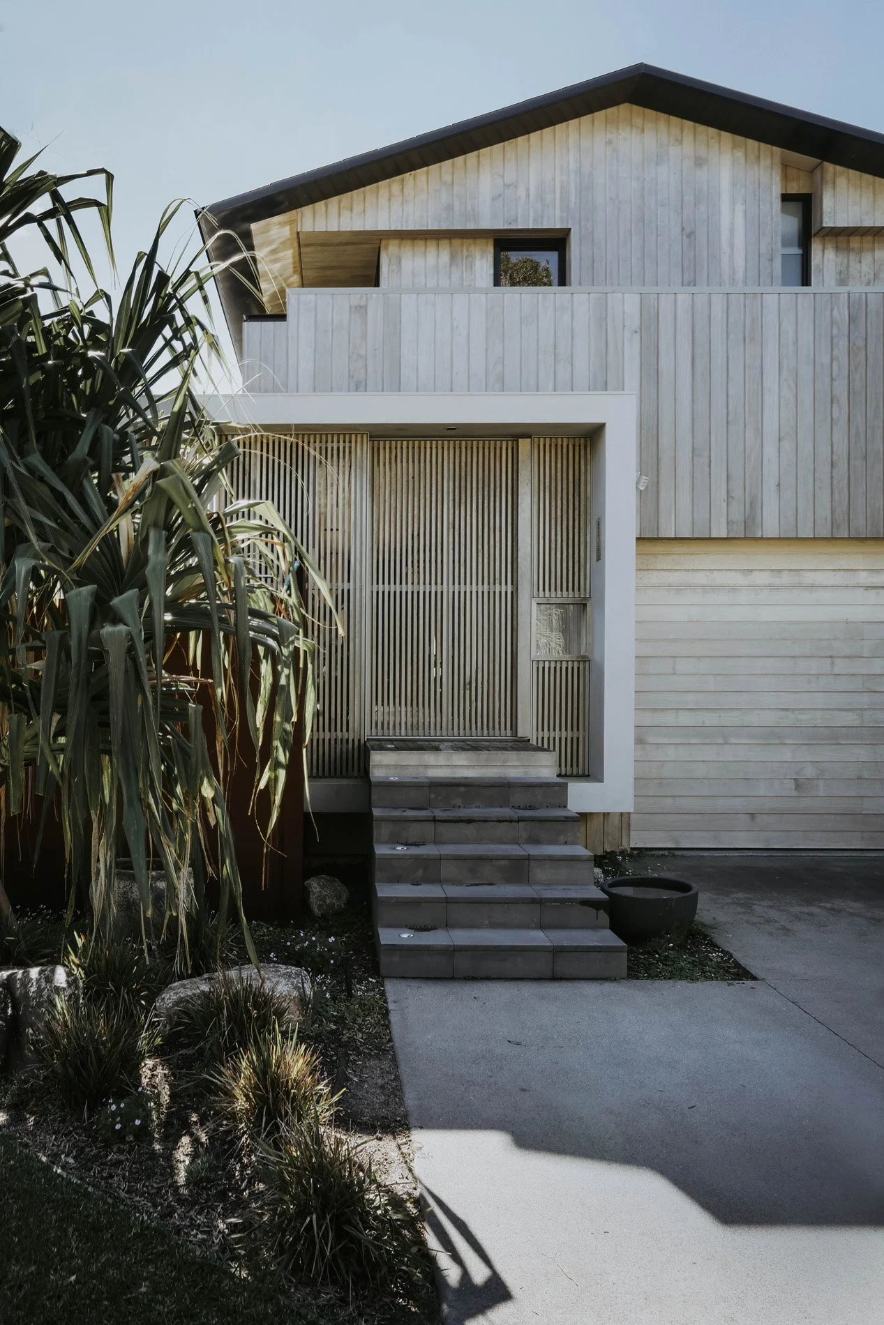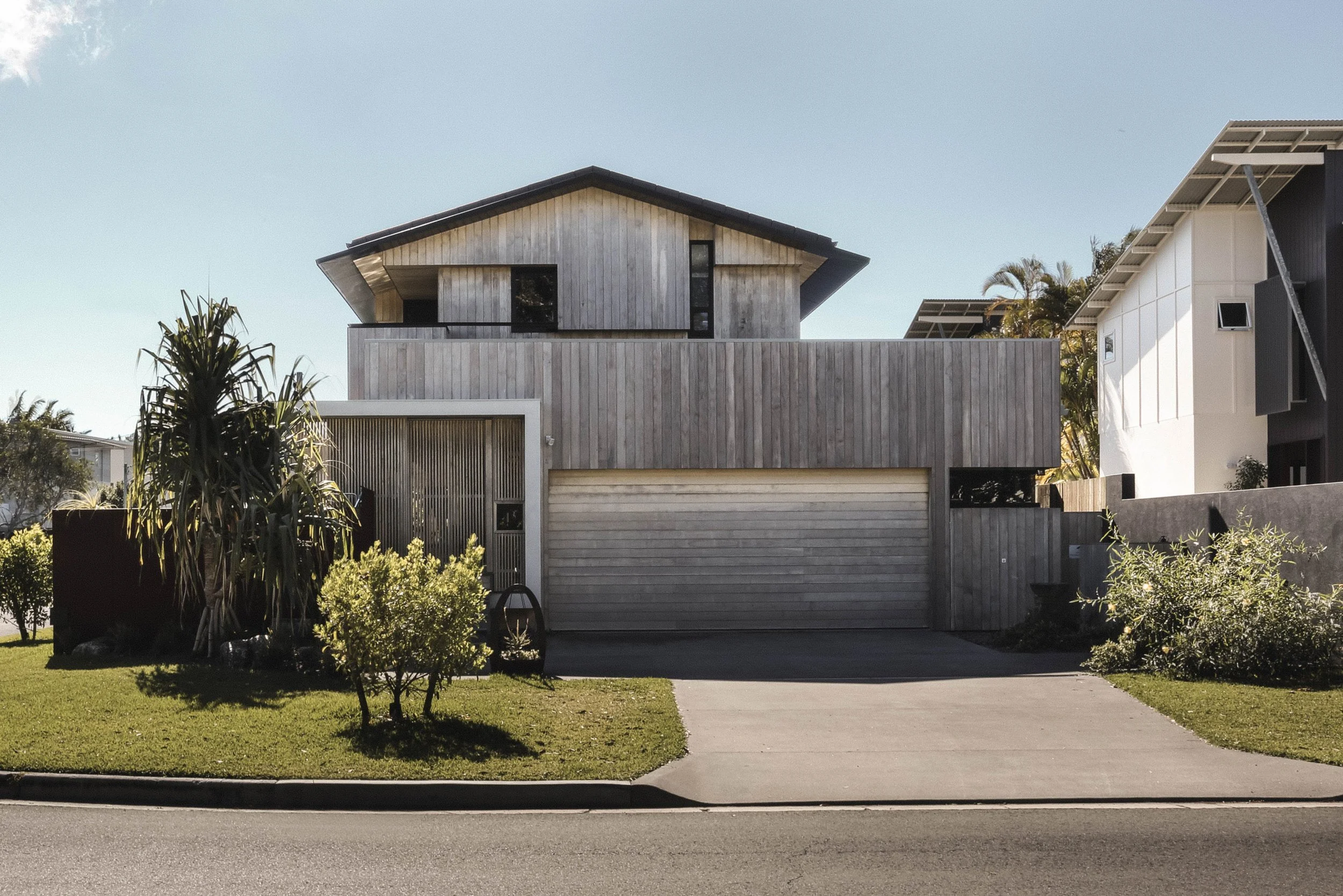 A thoughtfully crafted knockdown rebuild, this home blends contemporary sophistication with the natural beauty of timber. The design celebrates craftsmanship, with striking Accoya cladding enveloping the house, exuding warmth and durability. The granny flat, featuring dark-stained ply, offers a modern contrast while maintaining a refined, understated elegance. Every detail in this project is carefully considered to create a seamless connection between the home and its surroundings, ensuring a timeless aesthetic that balances both modern living and natural textures. The result is a home that feels as enduring as it is inviting.